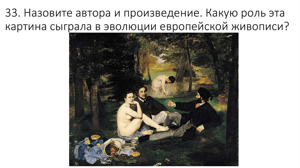 36. 33. Назовите автора и произведение. Какую роль эта картина сыграла в эволюции европейской живописи?