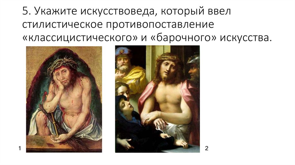 8. 5. Укажите искусствоведа, который ввел стилистическое противопоставление «классицистического» и «барочного» искусства.