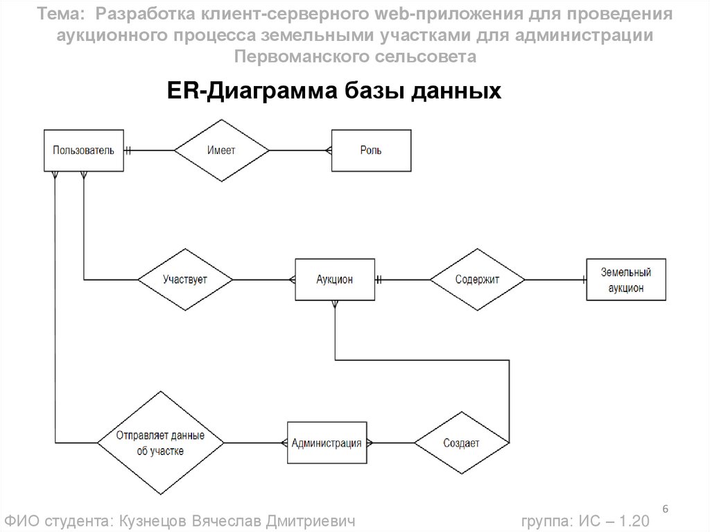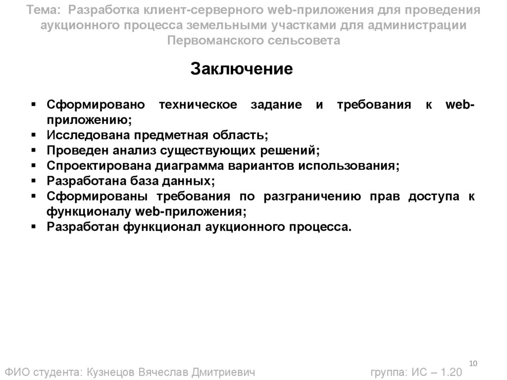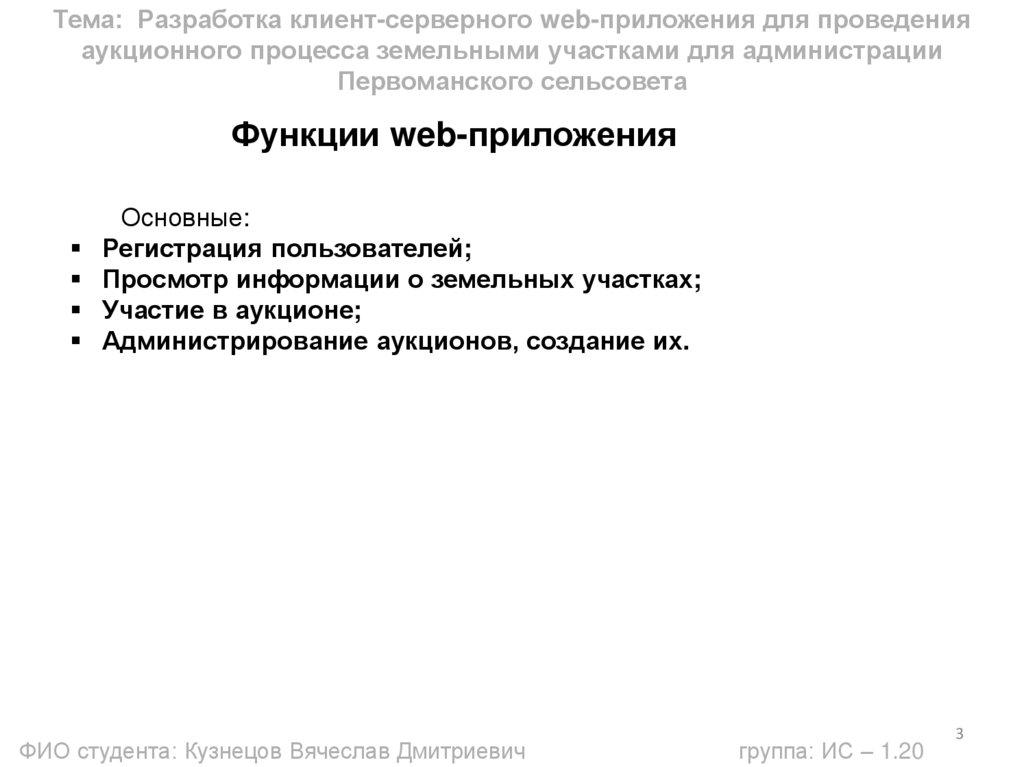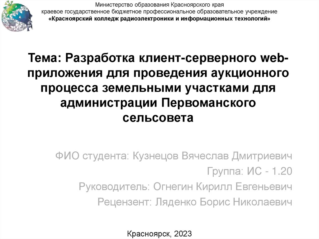 Тема: Разработка клиент-серверного web-приложения для проведенияаукционного процесса земельными участками для администрации