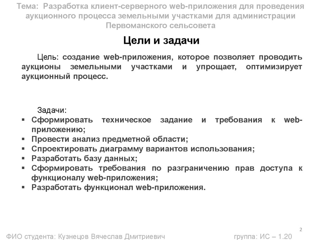 1. Тема: Разработка клиент-серверного web-приложения для проведения аукционного процесса земельными участками для администрации