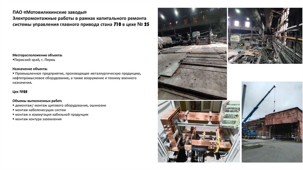 ПАО «Мотовилихинские заводы»Электромонтажные работы в рамках капитального ремонта