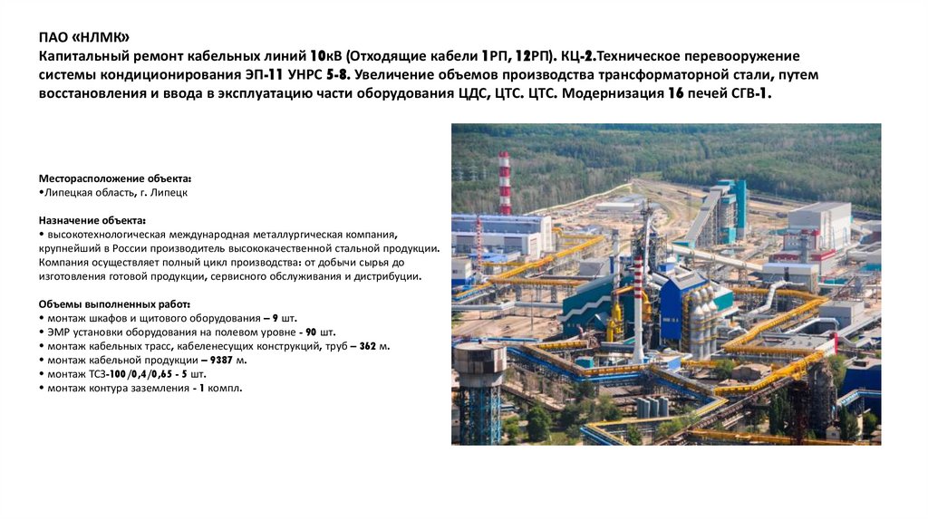 НЛМК - Электромонтажные работы на объектах промышленно-гражданских предприятий