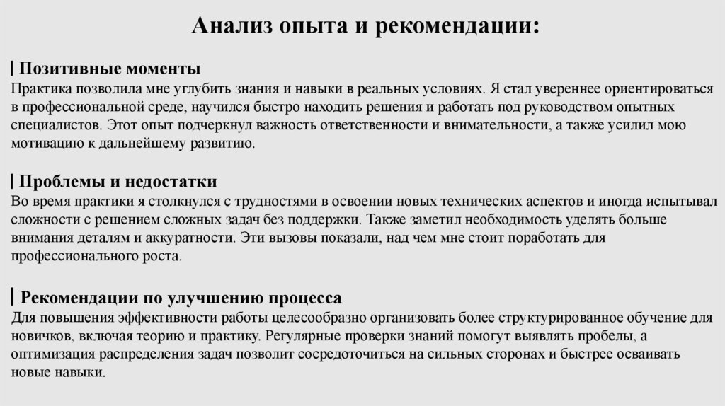Анализ опыта и рекомендации:▎Позитивные моменты