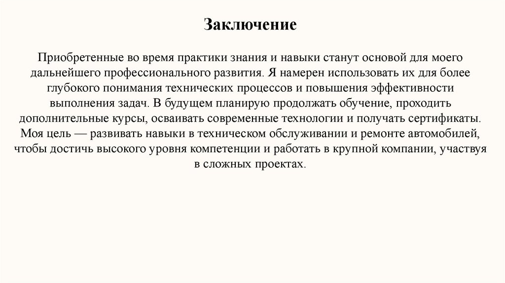 ЗаключениеПриобретенные во время практики знания и навыки станут основой для моего