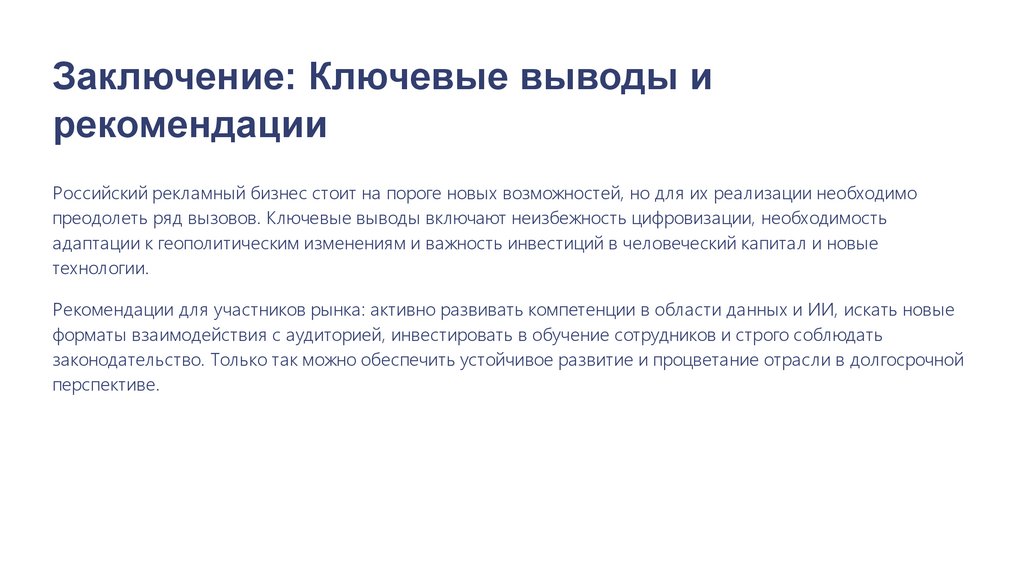 Заключение: Ключевые выводы ирекомендации