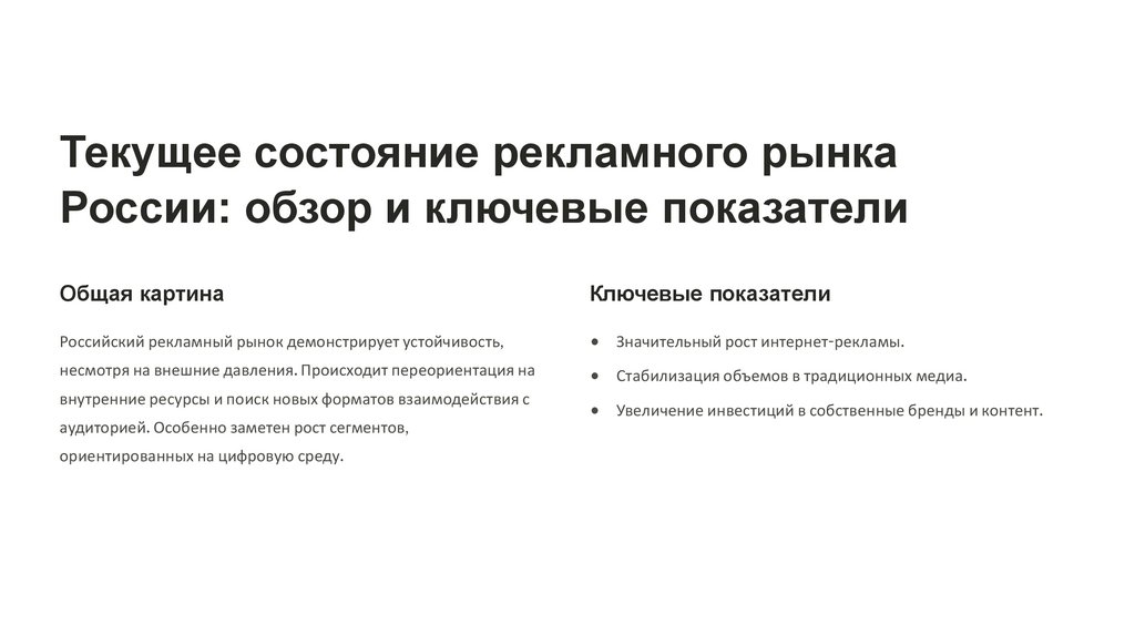 Текущее состояние рекламного рынкаРоссии: обзор и ключевые показатели