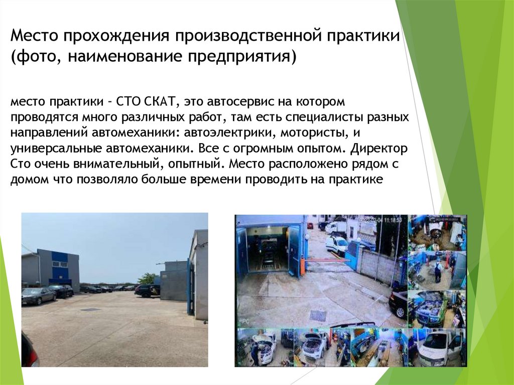 2. Место прохождения производственной практики (фото, наименование предприятия) место практики – СТО СКАТ, это автосервис на
