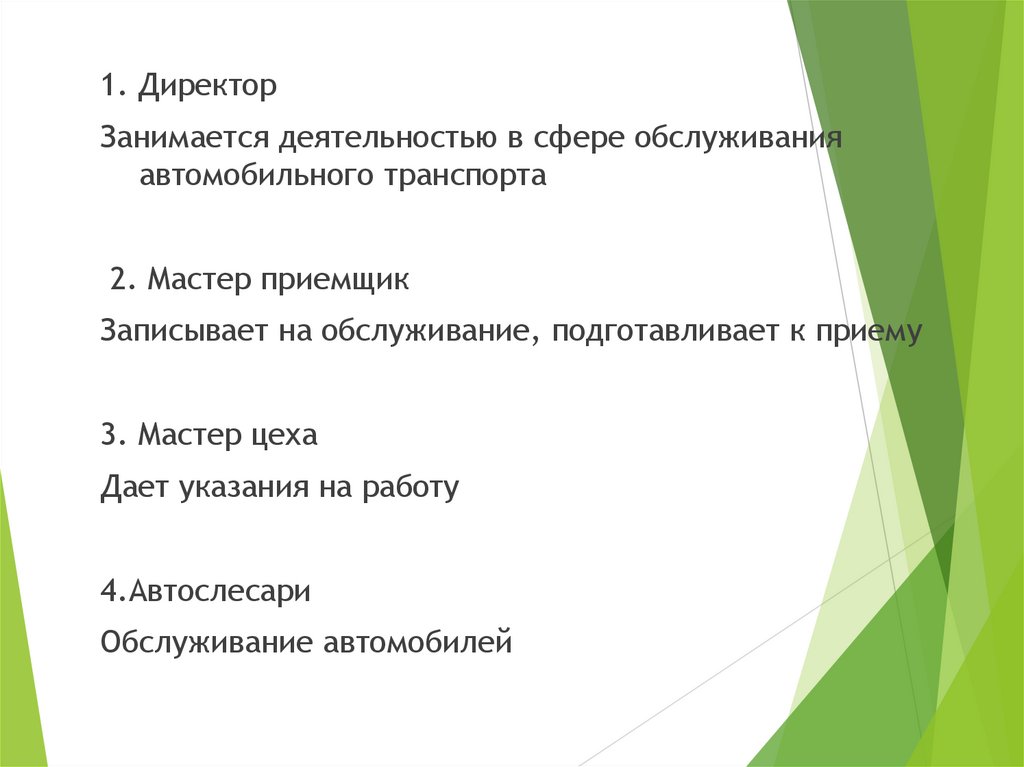 1. ДиректорЗанимается деятельностью в сфере обслуживания