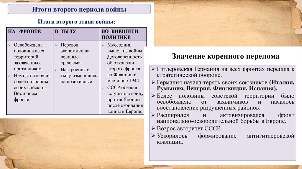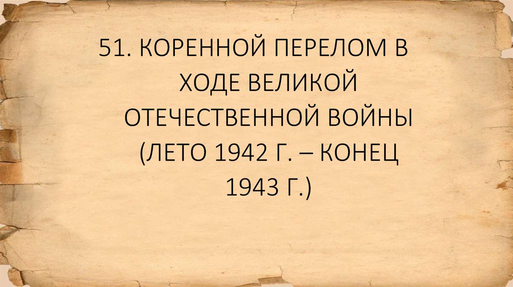 Коренной перелом в ходе Великой Отечественной войны (лето 1942 г. – конец 1943 г.)