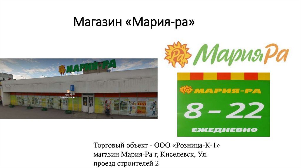 Магазин «Мария-ра»Торговый объект - ООО «Розница-К-1»