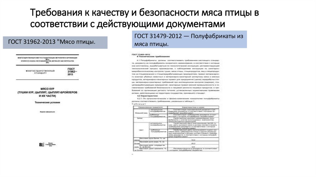 Требования к качеству и безопасности мяса птицы всоответствии с действующими документами