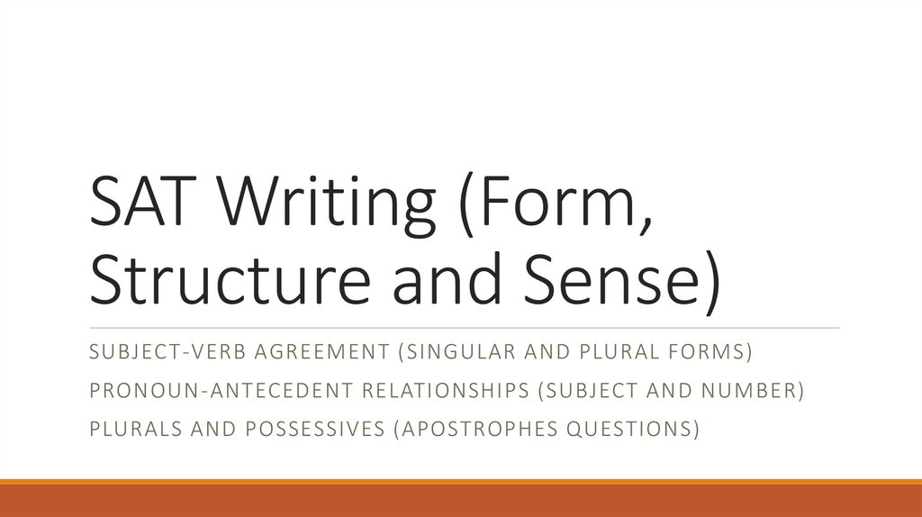 SUBJECT-VERB AGREEMENT (SINGULAR AND PLURAL FORMS)PRONOUN-ANTECEDENT RELATIONSHIPS (SUBJECT AND NUMBER)