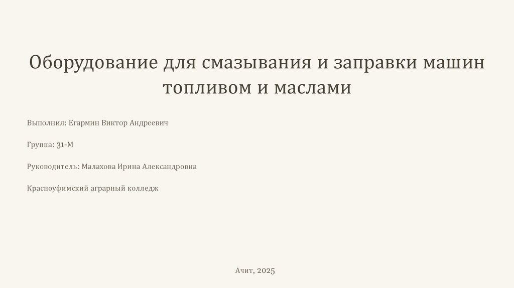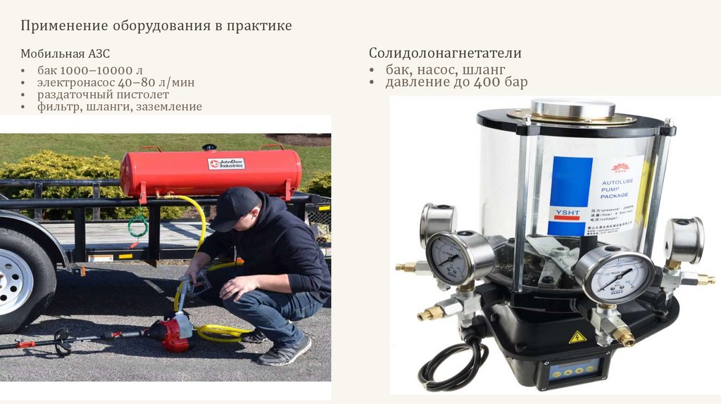 Оборудование для смазывания и заправки машинтопливом и маслами