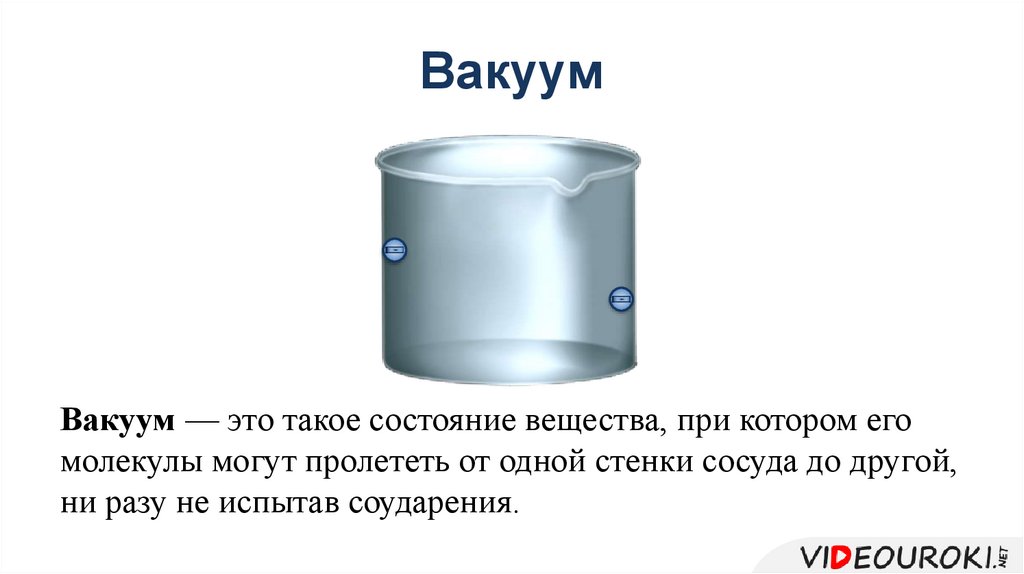 Вакуум — это такое состояние вещества, при котором егомолекулы могут пролететь от одной стенки сосуда до другой,