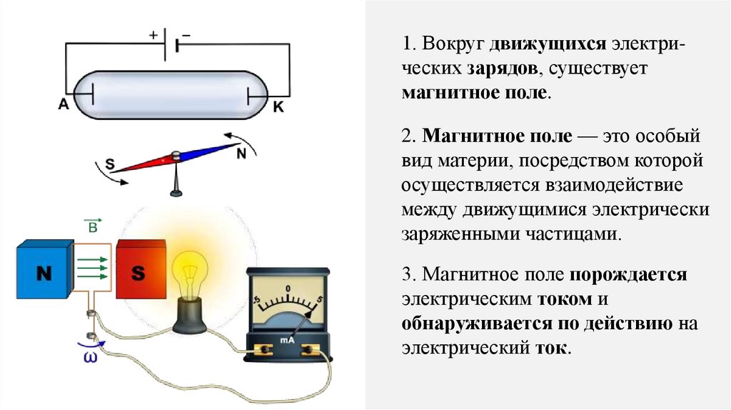 1. Вокруг движущихся электрических зарядов, существуетмагнитное поле.