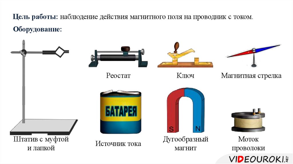 Действие магнитного поля на проводник с током. Л/р №1. Наблюдение действия магнитного поля на ток