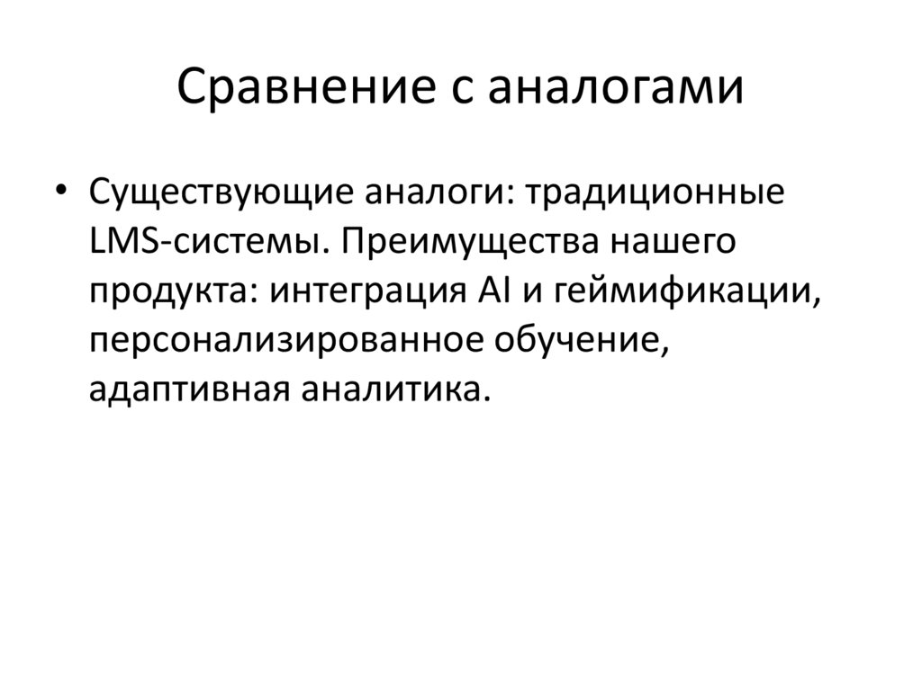 Сравнение с аналогами• Существующие аналоги: традиционные