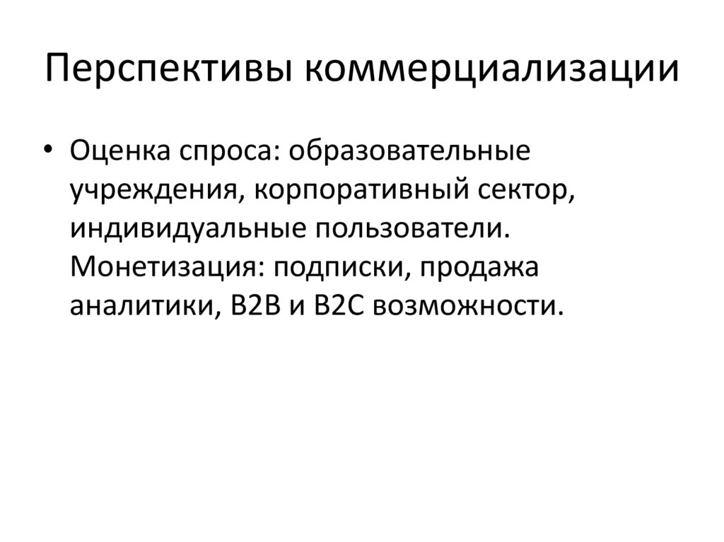 Перспективы коммерциализации• Оценка спроса: образовательные