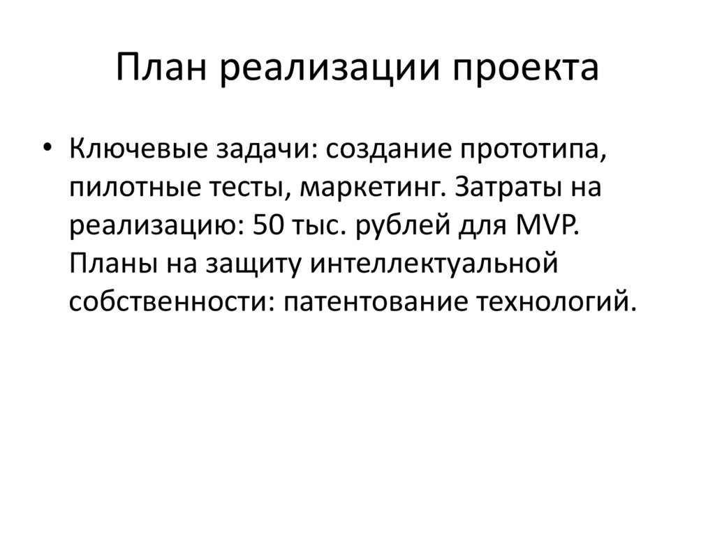 План реализации проекта• Ключевые задачи: создание прототипа,