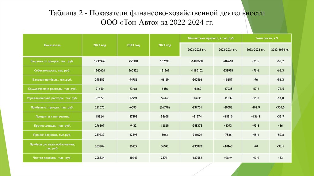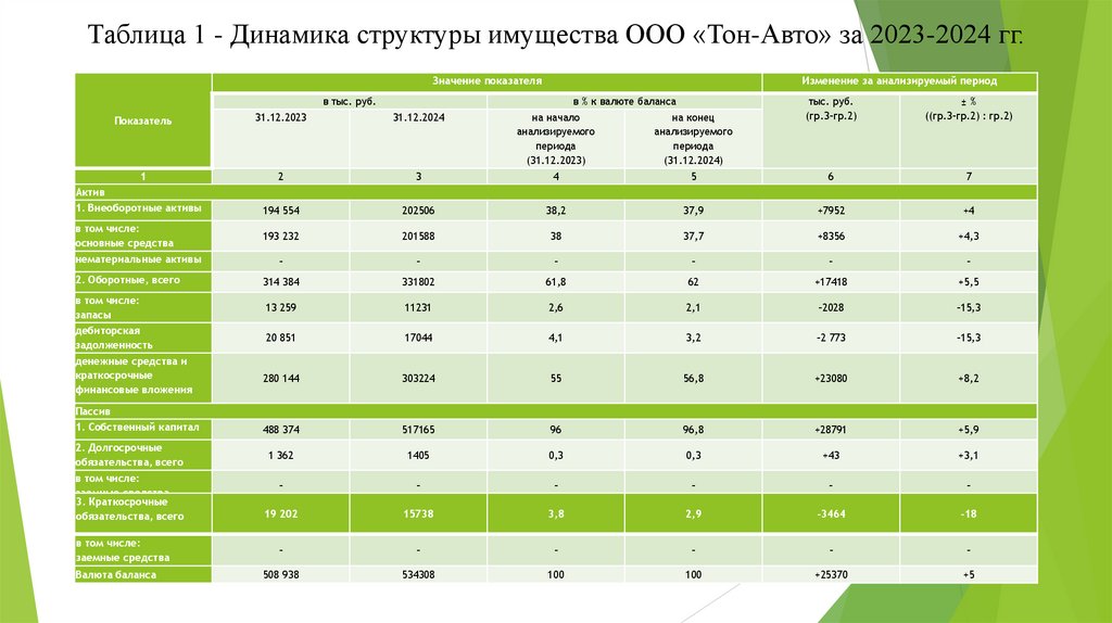 1. Таблица 1 - Динамика структуры имущества ООО «Тон-Авто» за 2023-2024 гг.