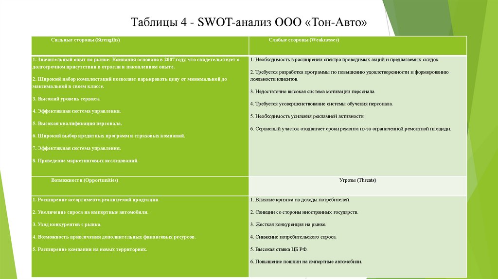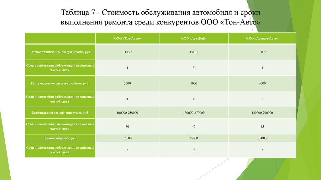7. Таблица 7 - Стоимость обслуживания автомобиля и сроки выполнения ремонта среди конкурентов ООО «Тон-Авто»