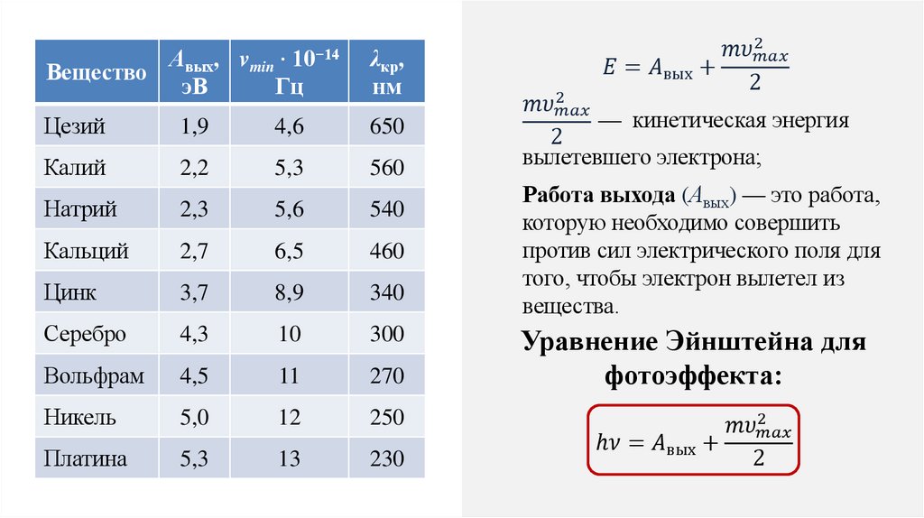 для фотоэффекта