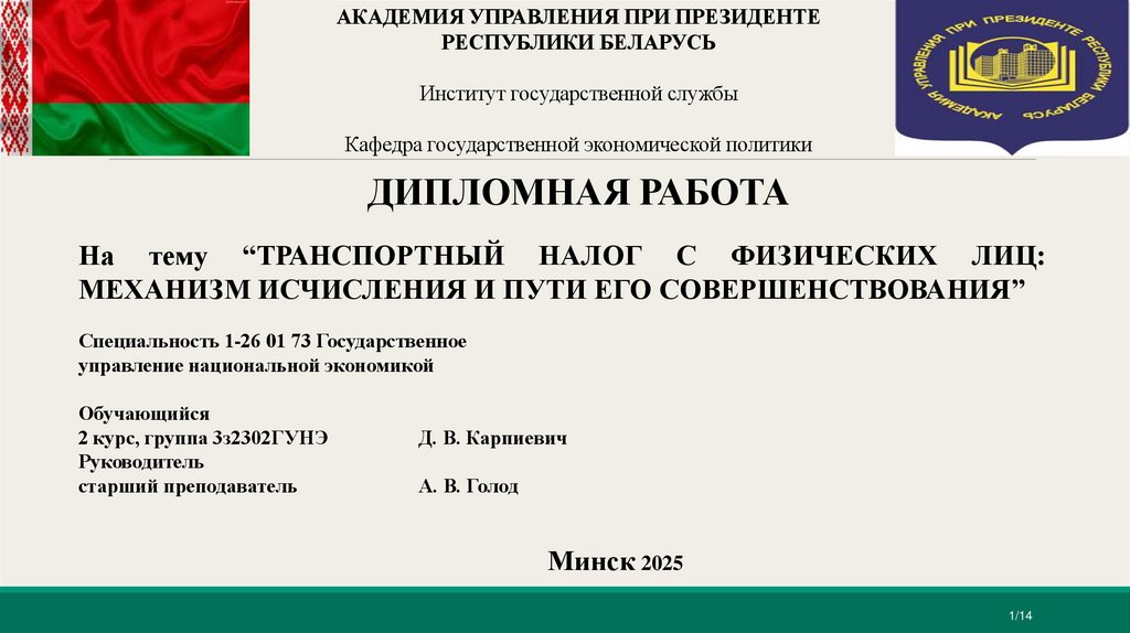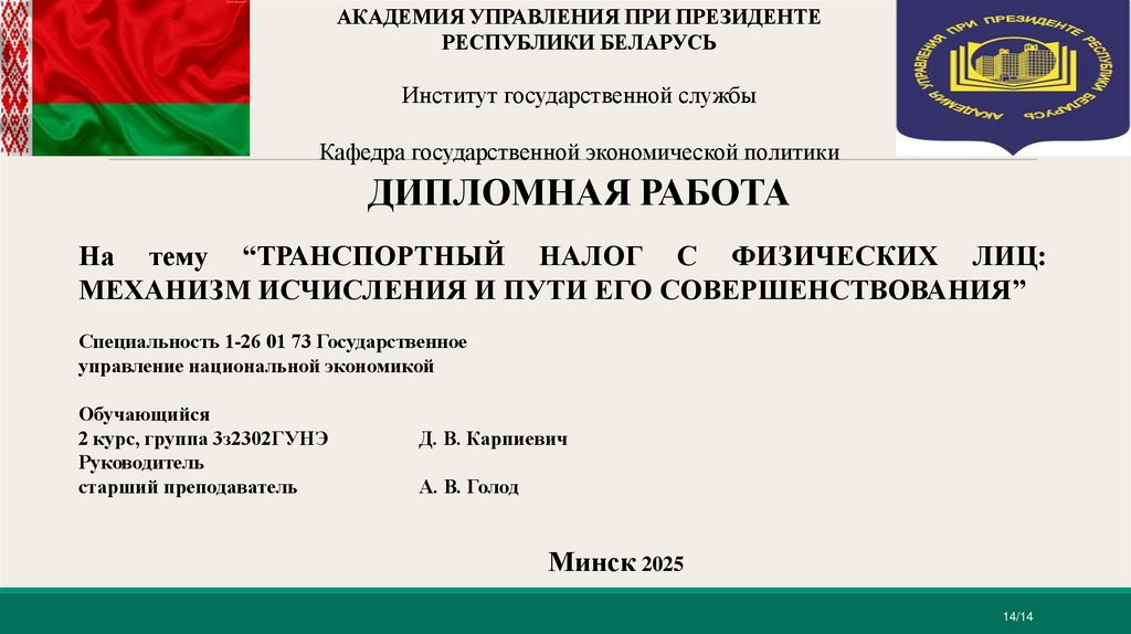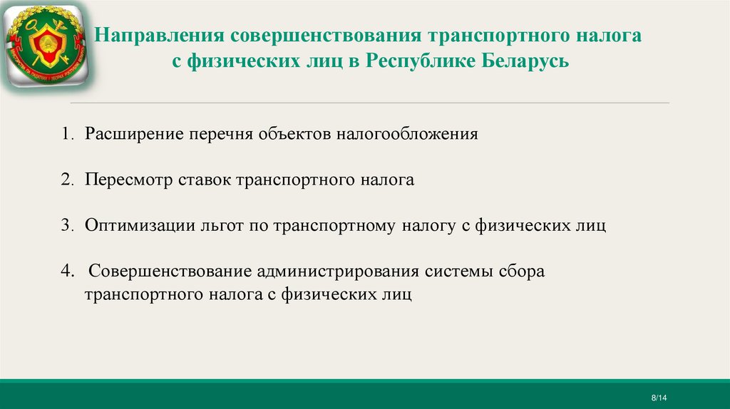 Направления совершенствования транспортного налогас физических лиц в Республике Беларусь