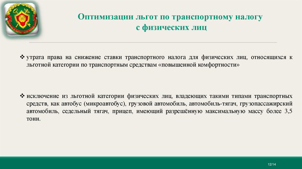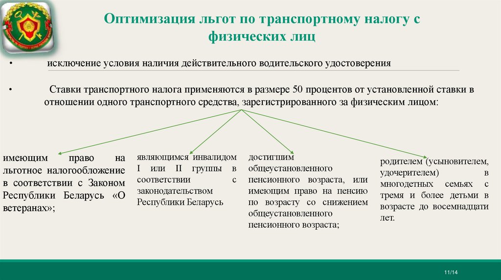 Оптимизации льгот по транспортному налогус физических лиц