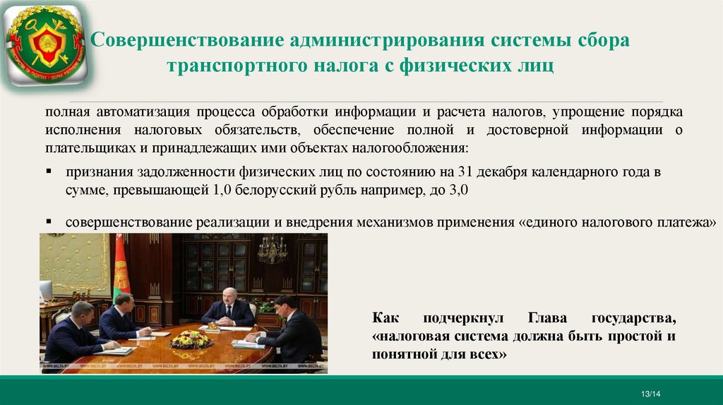 Совершенствование администрирования системы сборатранспортного налога с физических лиц