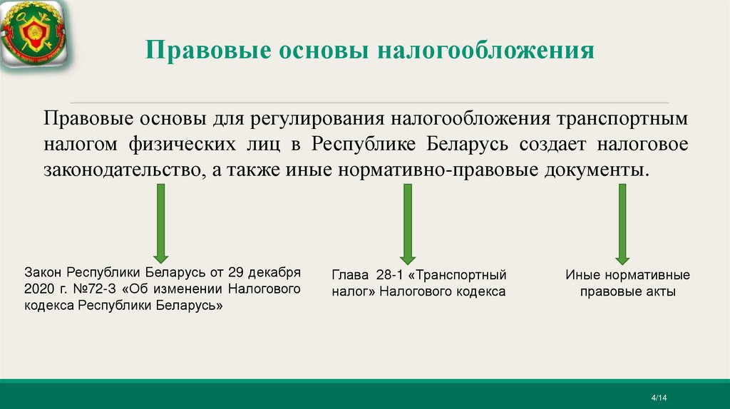 Правовые основы налогообложенияПравовые основы для регулирования налогообложения транспортным
