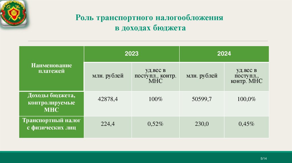 Роль транспортного налогообложенияв доходах бюджета