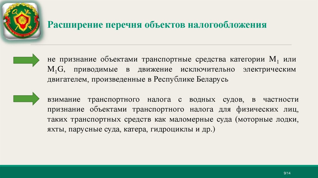 Расширение перечня объектов налогообложенияне признание объектами транспортные средства категории M1 или