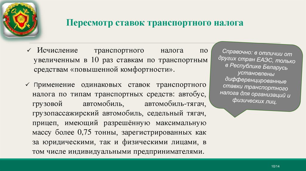 Пересмотр ставок транспортного налогаИсчисление