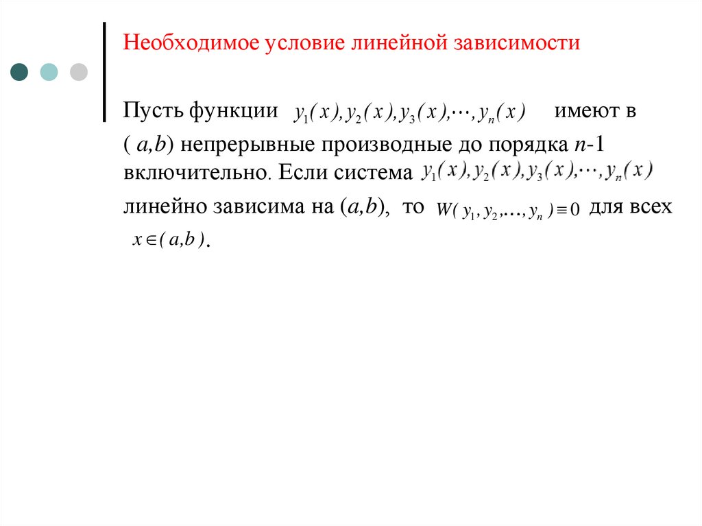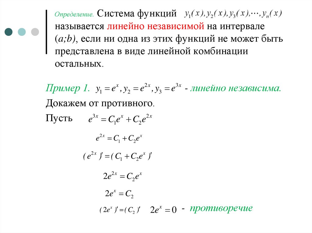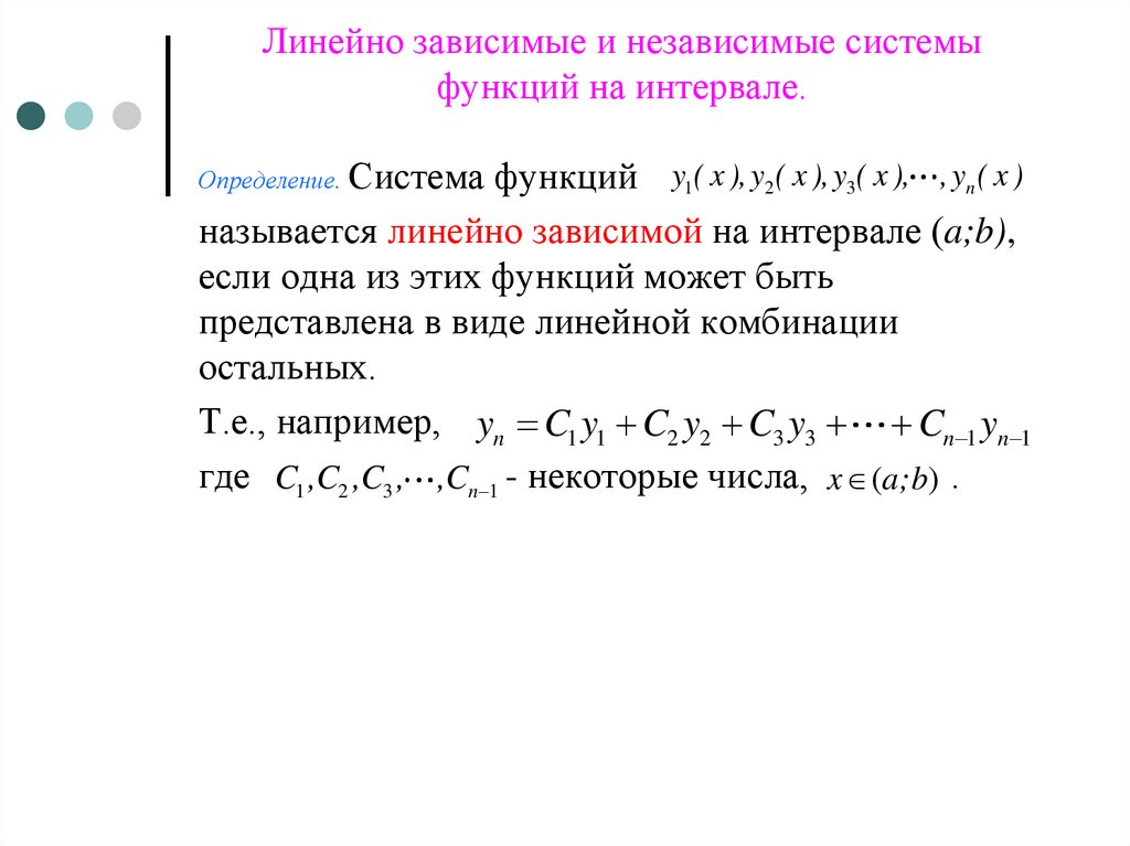 13. Определение. Система функций называется линейно независимой на интервале (a;b), если ни одна из этих функций не может быть