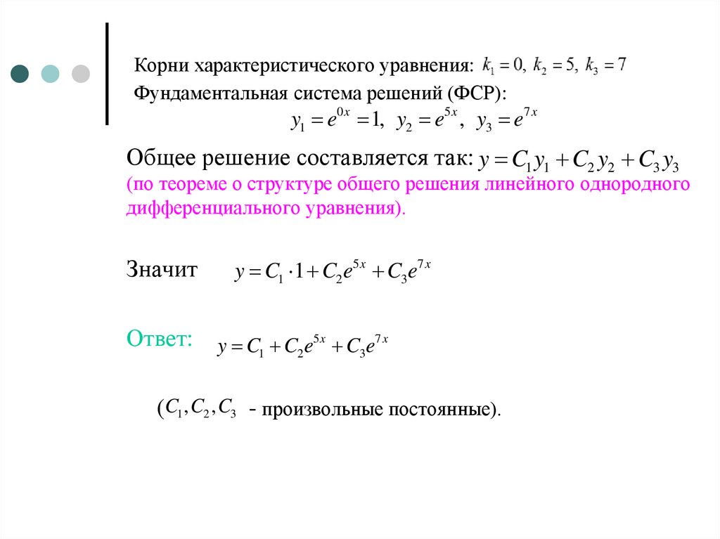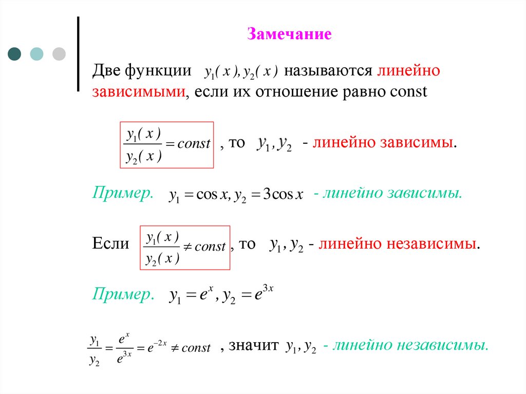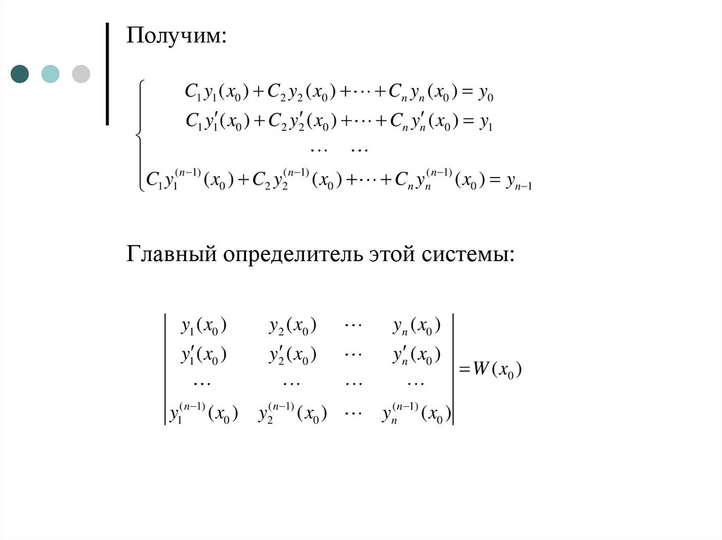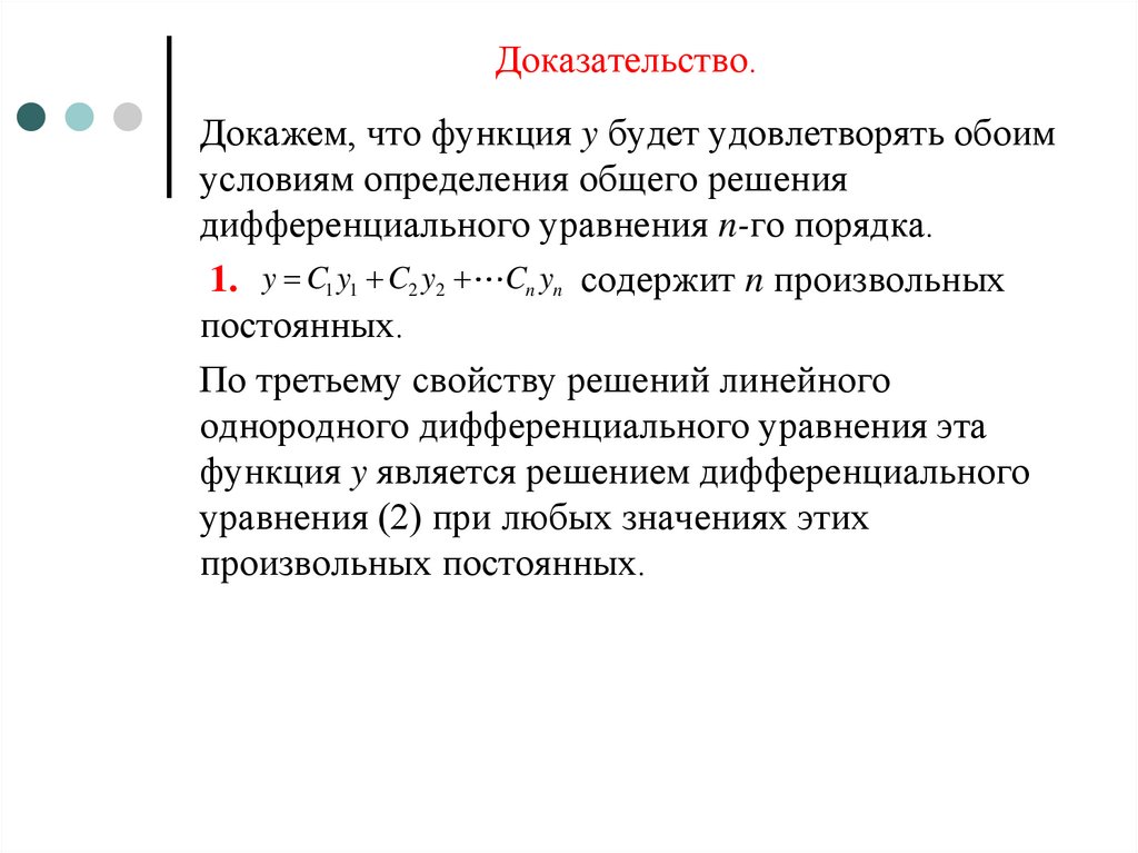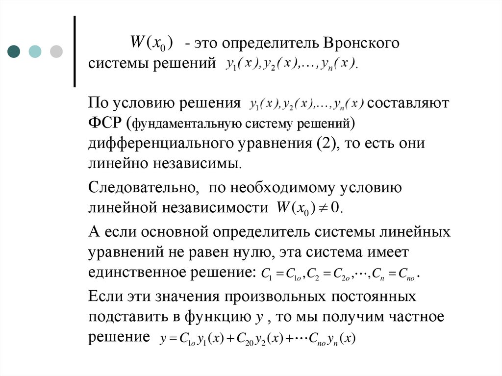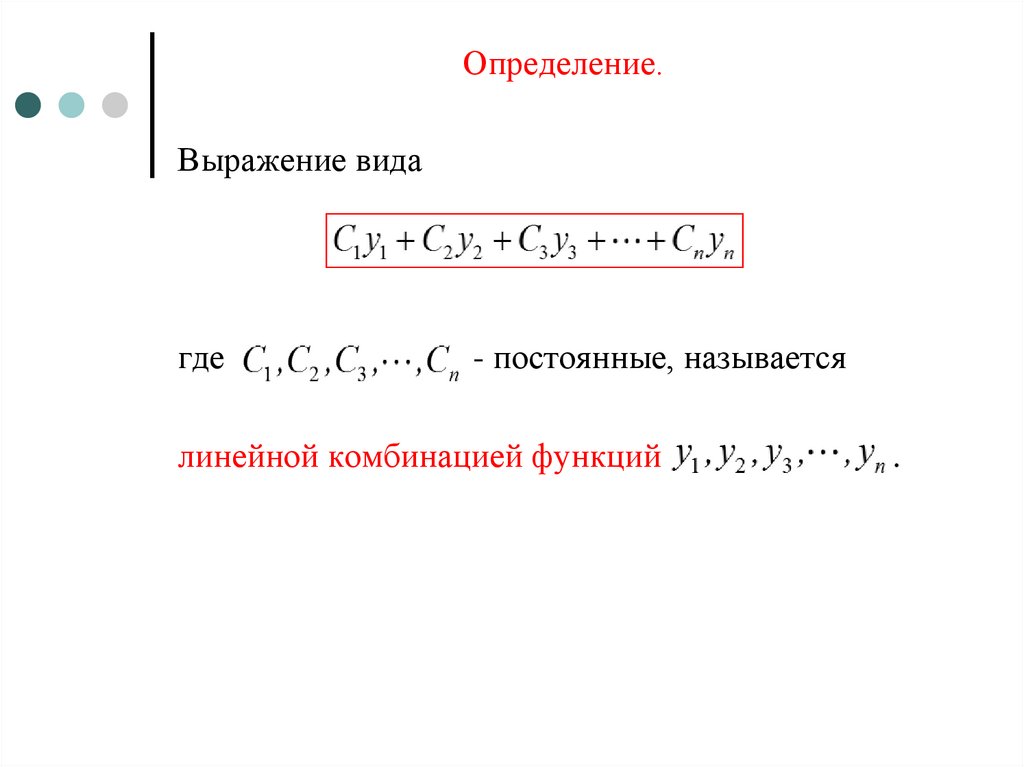10. 3. Линейная комбинация решений ЛОДУ (2) является решением этого уравнения.