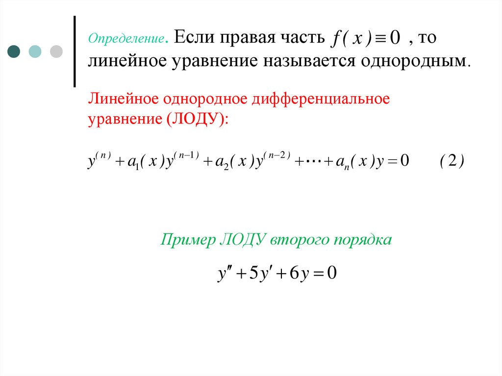 4. Определение. Если правая часть , то линейное уравнение называется однородным.