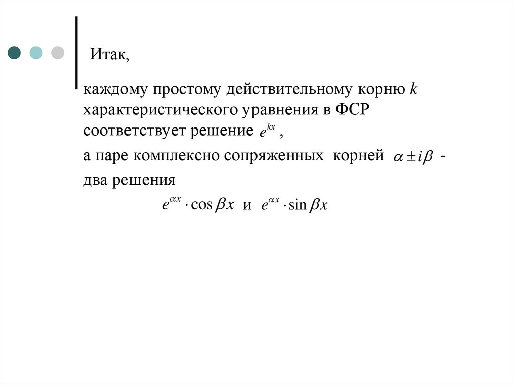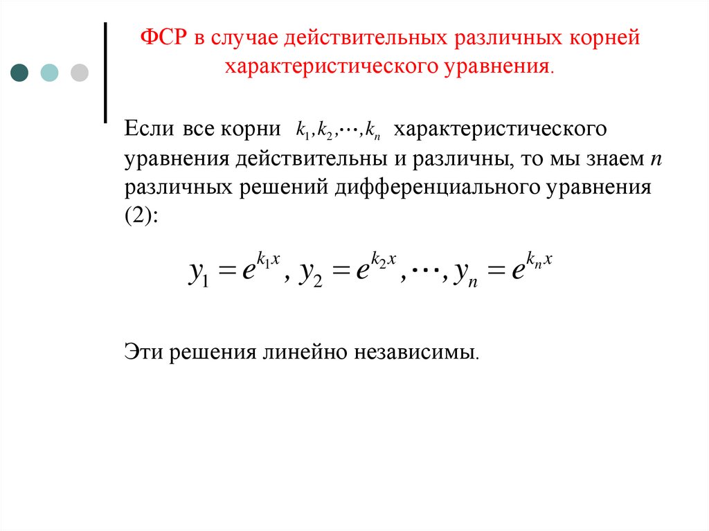 каждому простому действительному корню kхарактеристического уравнения в ФСР
