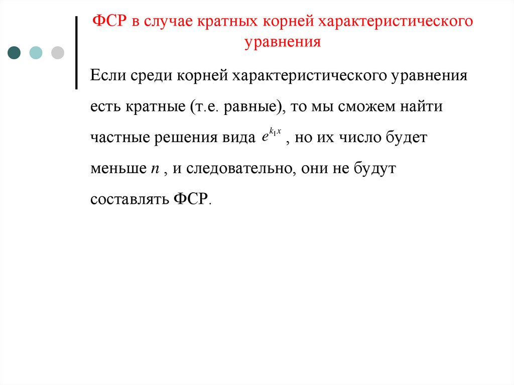 Если среди корней характеристического уравненияесть кратные (т.е. равные), то мы сможем найти