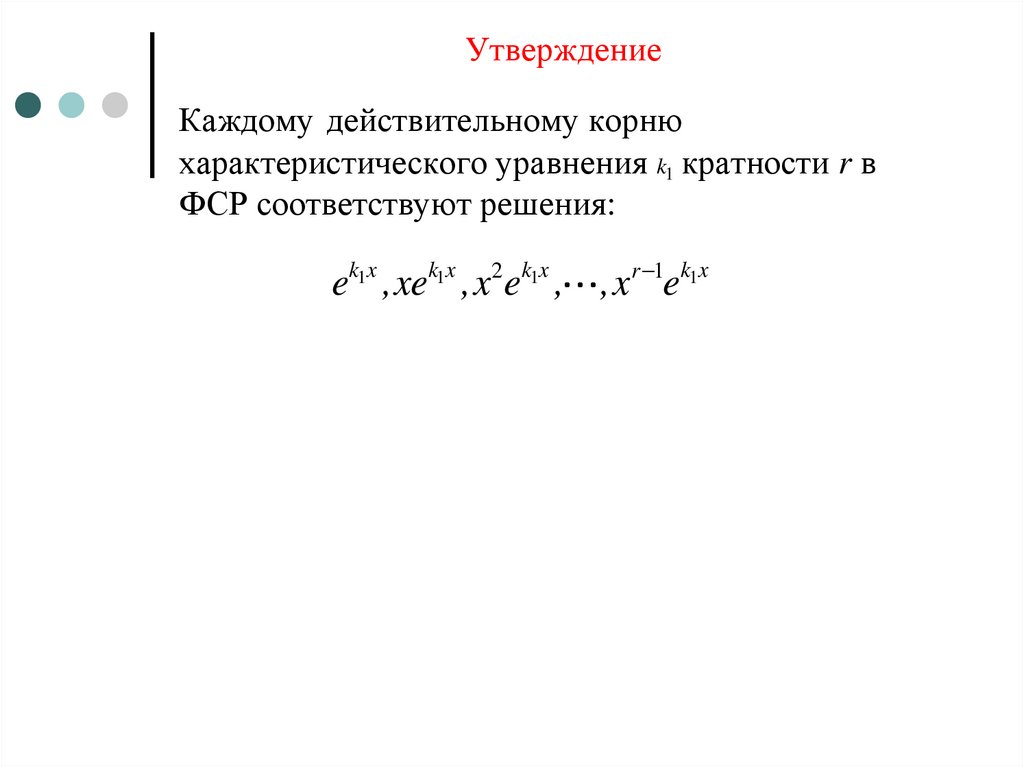 Каждому действительному корнюхарактеристического уравнения k1 кратности r в