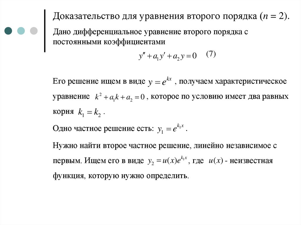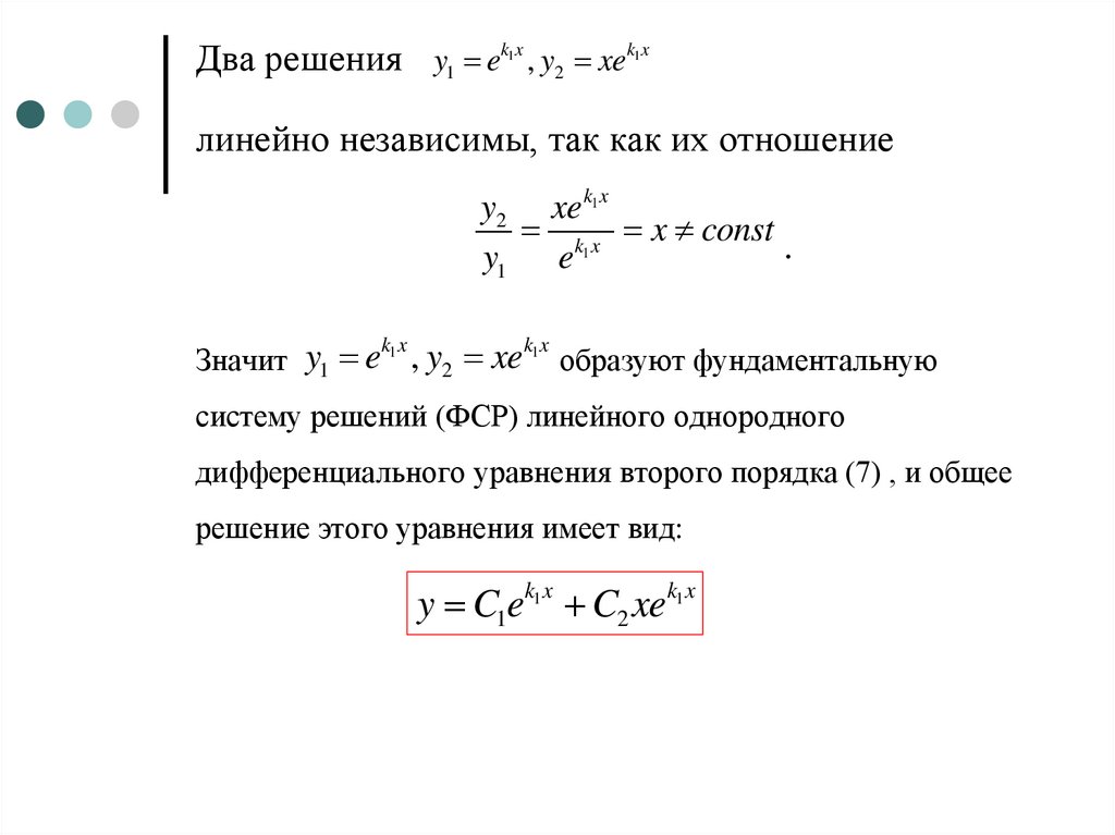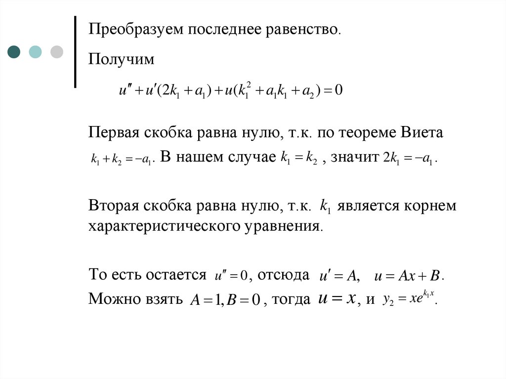 уравнение k 2 a1k a2 0 , которое по условию имеет два равных
