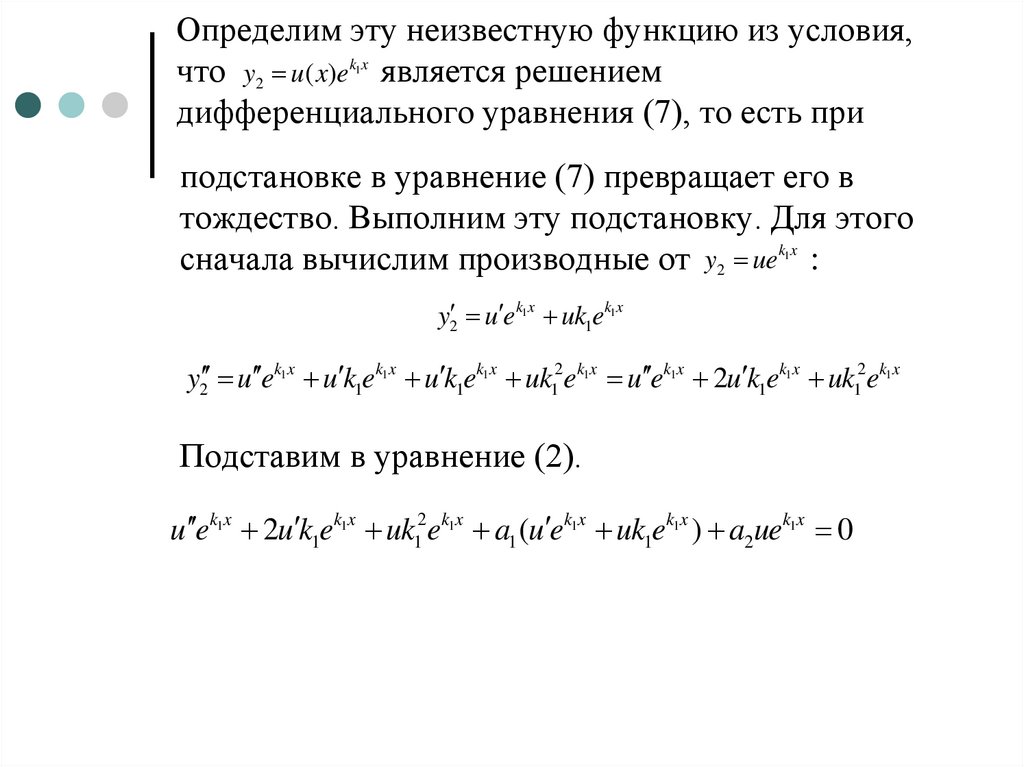 Определим эту неизвестную функцию из условия,что y2 u( x)ek x является решением