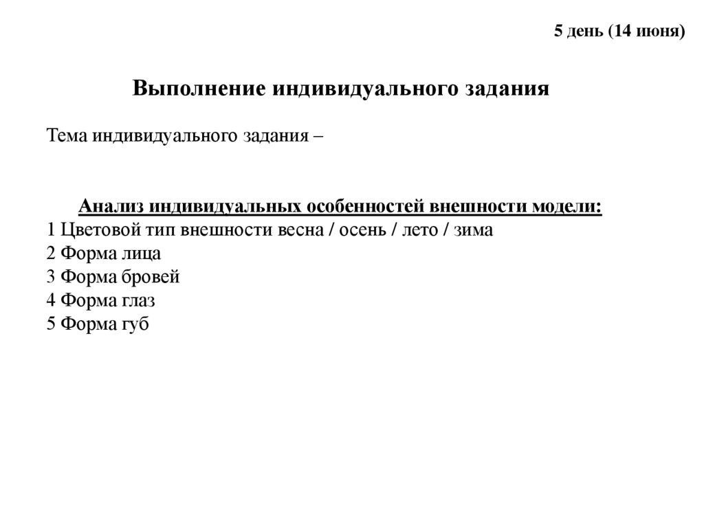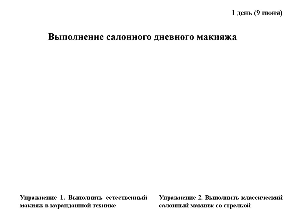 1 день (9 июня)Выполнение салонного дневного макияжа