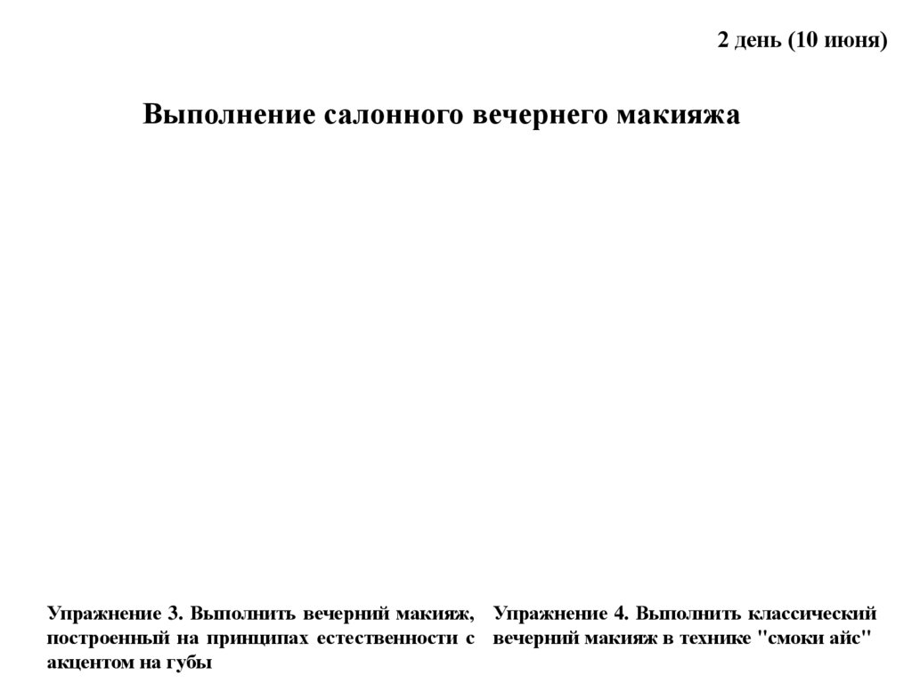 2 день (10 июня)Выполнение салонного вечернего макияжа