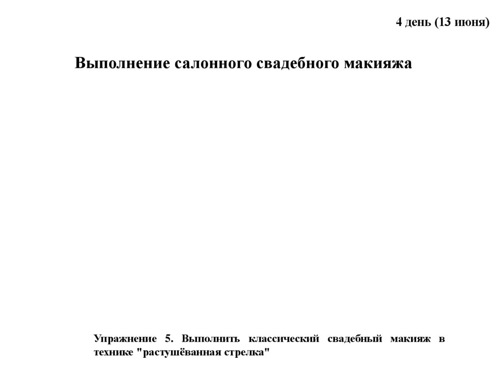 4 день (13 июня)Выполнение салонного свадебного макияжа