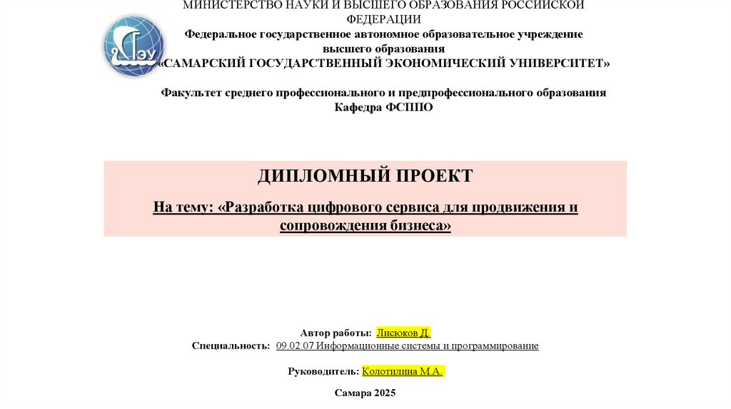 МИНИСТЕРСТВО НАУКИ И ВЫСШЕГО ОБРАЗОВАНИЯ РОССИЙСКОЙФЕДЕРАЦИИ