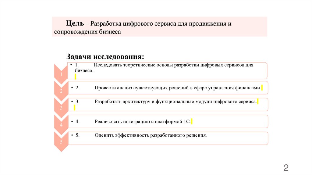 Цель – Разработка цифрового сервиса для продвижения исопровождения бизнеса
