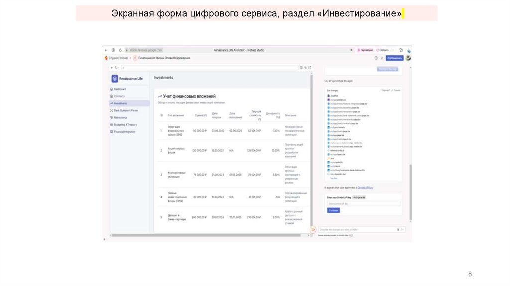 Экранная форма цифрового сервиса, раздел «Инвестирование»8