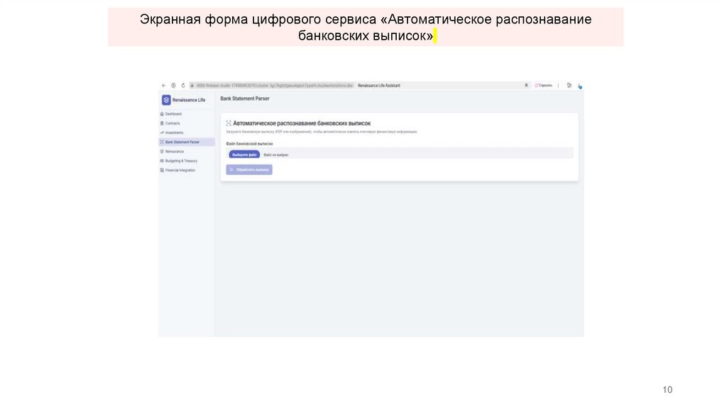 Экранная форма цифрового сервиса «Автоматическое распознаваниебанковских выписок»