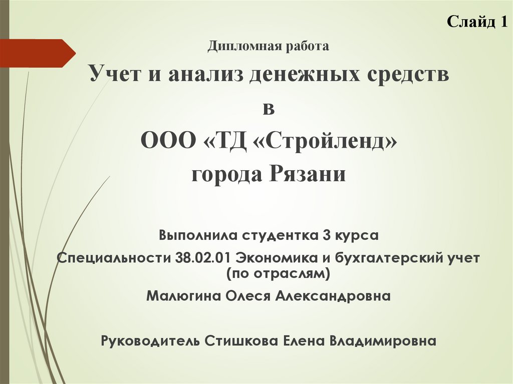 Учет и анализ денежных средств в ООО «ТД «Стройленд» города Рязани