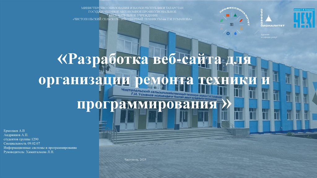 «ЧИСТОПОЛЬСКИЙ СЕЛЬСКОХОЗЯЙСТВЕННЫЙ ТЕХНИКУМ им. Г.И.УСМАНОВА»